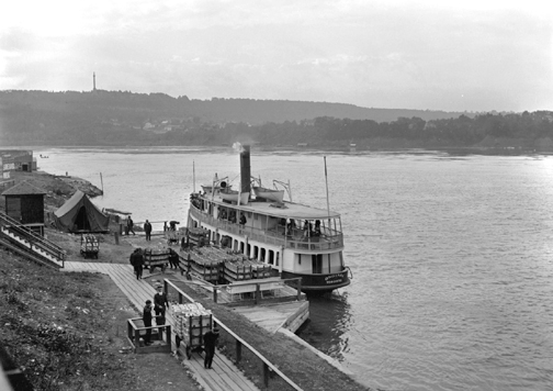 Transferring the Niagara peach crop from the ferry to the Toronto boat at Lewiston on the Niagara River