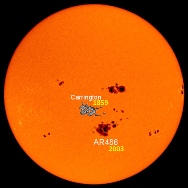 Credit: NASA & Spaceweather.com; Richard Carrington's own drawings with sunspot AR486 in 2003.